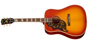 This gorgeous acoustic guitar has a thermally aged solid spruce top that is reinforced with traditional scalloped X-bracing made from quarter-sawn, solid spruce. The back and sides of the 1960 Hummingbird Reissue are made from solid mahogany. It delivers a warm, rich tone overall that works extraordinarily well in a wide range of musical styles. The one-piece, thermally-aged, 24.75" scale mahogany neck has a Rounded profile that is capped with a bound rosewood fretboard that is outfitted with 20 standard frets and adorned with mother-of-pearl split parallelogram inlays.