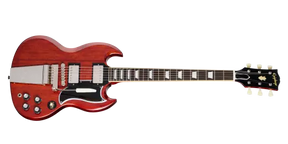 The 1964 SG™ Standard with Maestro™ Vibrola™ recreates one of the most beloved SG model years of all time-the 1964 SG Standard. While the 1964 SG Standard was famously used by such notable players as George Harrison and Eric Clapton, the model year was a standout for the SG in general. By 1964, the less intuitive Sideways Vibrato had been replaced with the dependable Maestro Vibrola, while the neck profile increased in size somewhat from the ultra-thin neck profiles found on some of the earlier SG models, and the SG's balance, playability, and look seemed to come into its own. 1964 was also the first full year that the SG dispensed with the Les Paul moniker it previously used. Now, Epiphone is proud to release the 1964 SG Standard Reissue with Maestro Vibrola, a stunning recreation of that legendary model. Made in collaboration with Gibson™ Custom, the Epiphone 1964 SG Standard with Maestro Vibrola is the most authentic recreation of the 1964 SG Standard ever released by Epiphone.