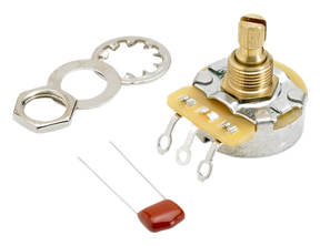 An integral part of the Delta Tone™ system on Fender American series electric guitars, this 250K "no-load" potentiometer functions as a normal tone control from 1 to 9. At 10, the tone control is removed from the circuit for increased output and overall tonal response. Fits most U.S.- and Mexico-made instruments requiring a 3/8" split-shaft potentiometer. Takes push-on control knob (no set screw). Mounting hardware and .022mf 250V capacitor included.