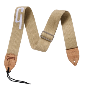This adjustable length Hemp Guitar Strap is made from durable, eco-friendly hemp fiber webbing. It has a 2" width, and tan color. The ends are 2-ply reinforced natural cork, and there is a small pocket at one end to hold spare picks. It's the perfect strap for your Generation Collection Acoustic, or any other Gibson guitar.