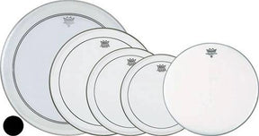 The Remo 5-Piece Rock ProPack includes clear 12", 13", 16" Pinstripe tom heads, a 22" Powerstroke bass head, and a 14" Coated Ambassador snare drum head.