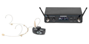 The Airline AHX Wireless UHF Headset System from Samson features a CR99 UHF receiver, an ATX transmitter, and a DE10 miniature condenser, dual-ear headset microphone. The frequency-agile UHF system can be used to capture audio in various environments and offers up to 300' of reliable performance for singers and other active performer applications.