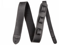 Sangle de guitare Fender Custom HQ en cuir noir/noir - 5 cm (2 pouces)