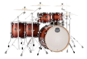 Ce kit de fûts 6 pièces comprend des toms suspendus de 10" et 12" montés sur pied, des toms basse de 14" et 16", une caisse claire de 14" et une grosse caisse de 22" x 18".