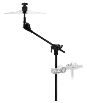 Bras de cymbale noir avec option de rangement pour une utilisation en perche ou droite.