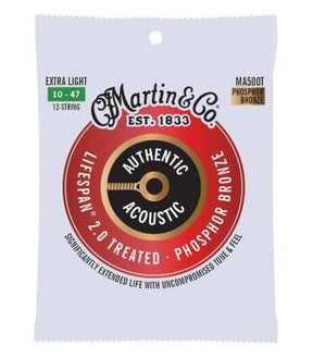 Martin - Cordes de guitare Authentic Acoustic Lifespan 2.0 - 92/8 Bronze phosphoreux - Extra Light 12 cordes 10-47