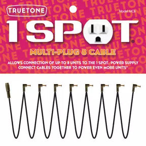 Le câble multiprise Truetone MC8 permet d'alimenter jusqu'à 8 pédales d'effet pour guitare à partir d'un seul adaptateur 1 Spot (1700 mA max.). Il est doté de fiches coudées, espacées de plus de 30 cm. Des contacts à ressort dans la prise d'entrée assurent un maintien sûr de l'adaptateur 1 Spot. Plusieurs MC8 peuvent être connectés ensemble pour alimenter encore plus d'effets.